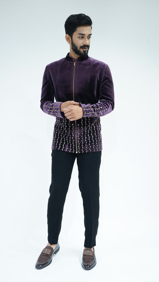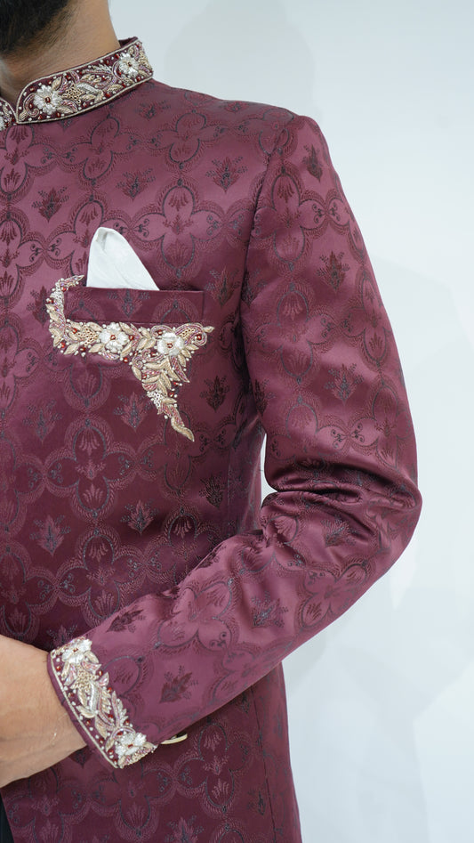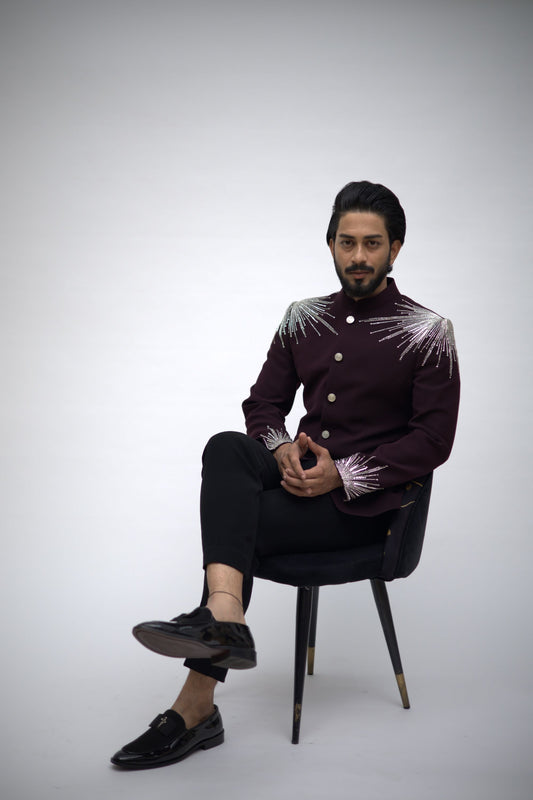 Wine Jodhpuri with White and silver cut beads and sequence work