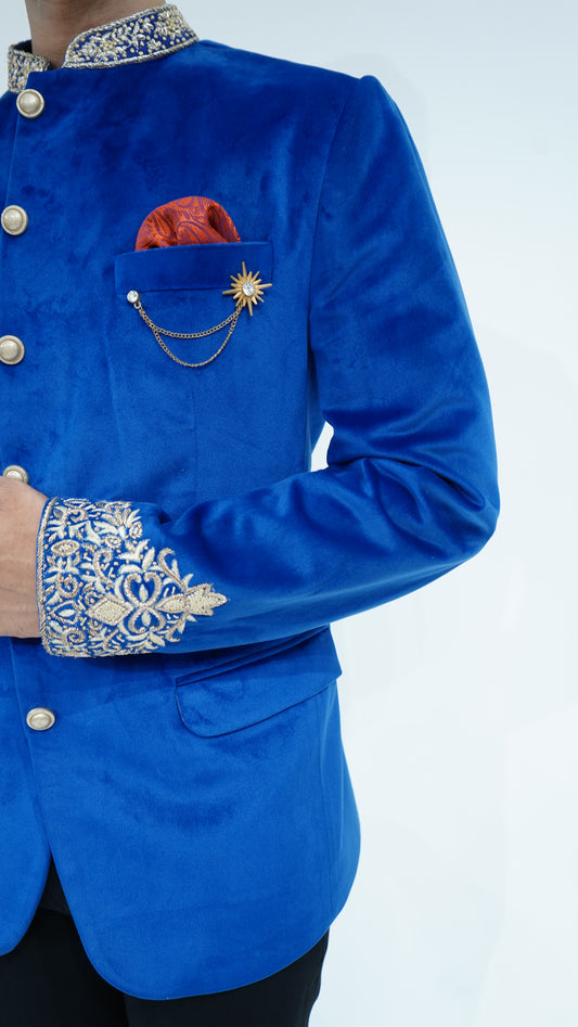 Ash Blue Metallic Cut Dana Embroided Jodhpuri