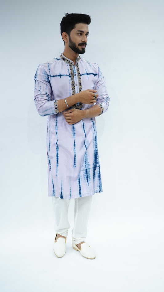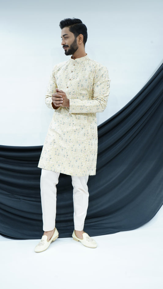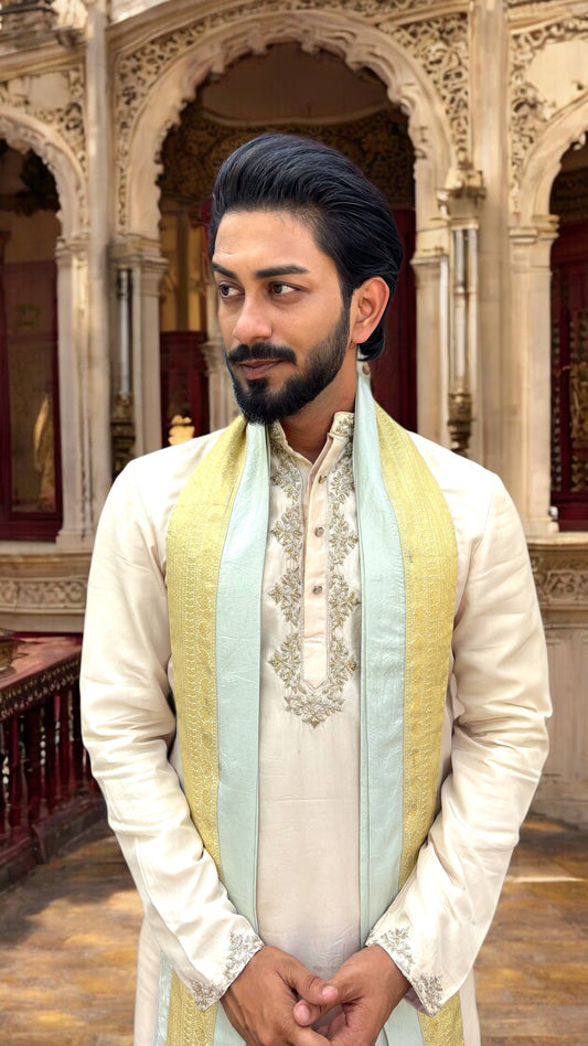 Soft Peach Habutai Kurta with Zardozi Embroidery