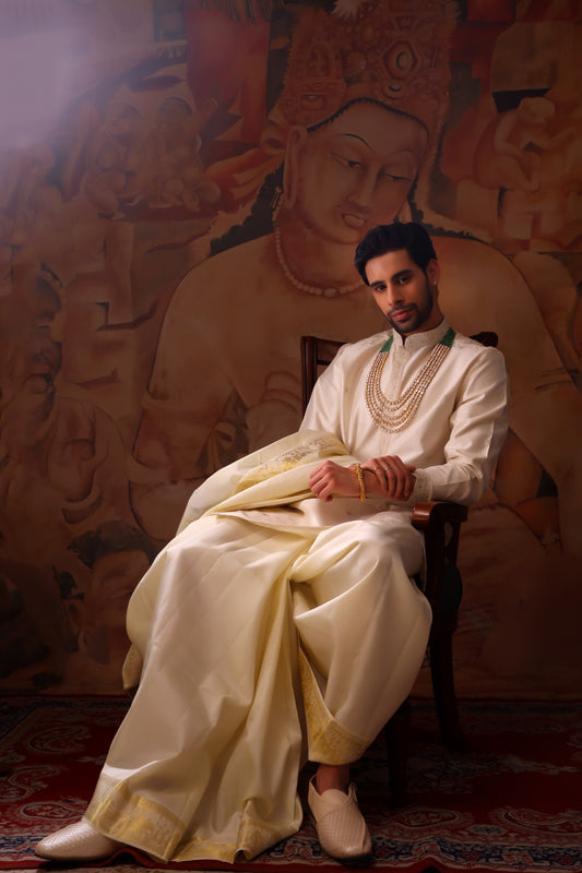 Ivory Gold Balaji Embroidered Pattu Pancha Set