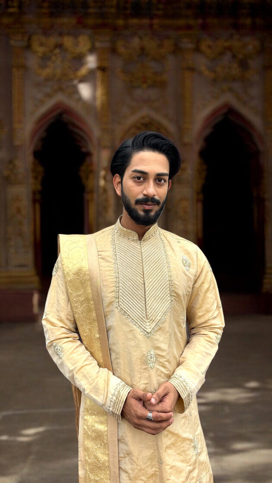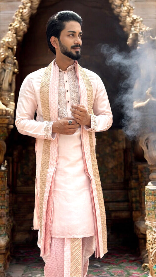 Soft Peach Habutai Kurta with Zardozi Embroidery