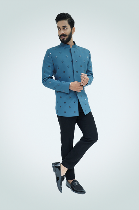 Ash Blue Metallic Cut Dana Embroided Jodhpuri