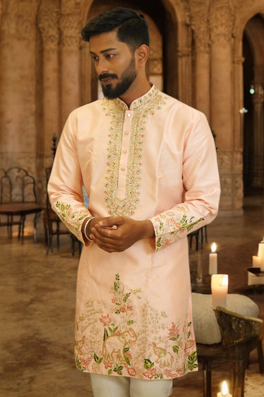Pastel Peach Designer Kurta & Ponam Pant Set