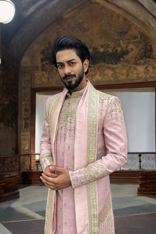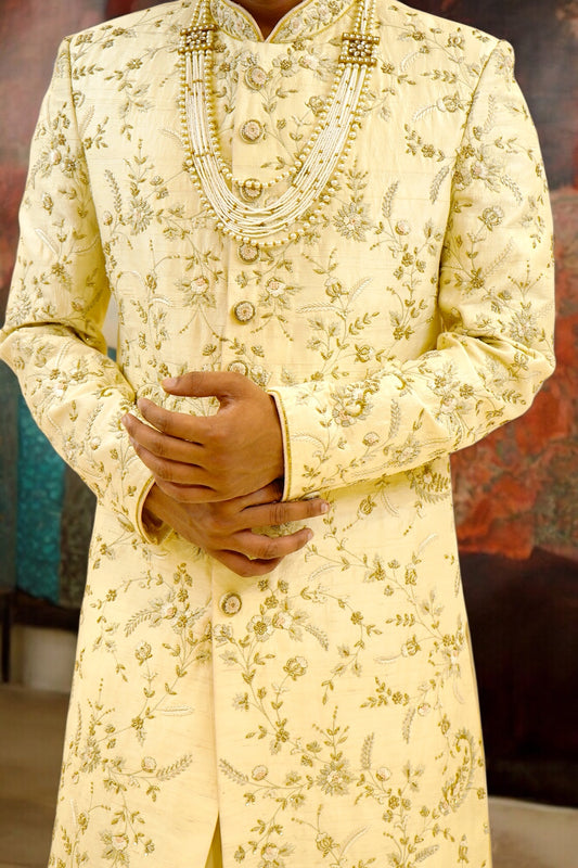 Arch Sherwani With Dupion Silk dhoti and khandwa
