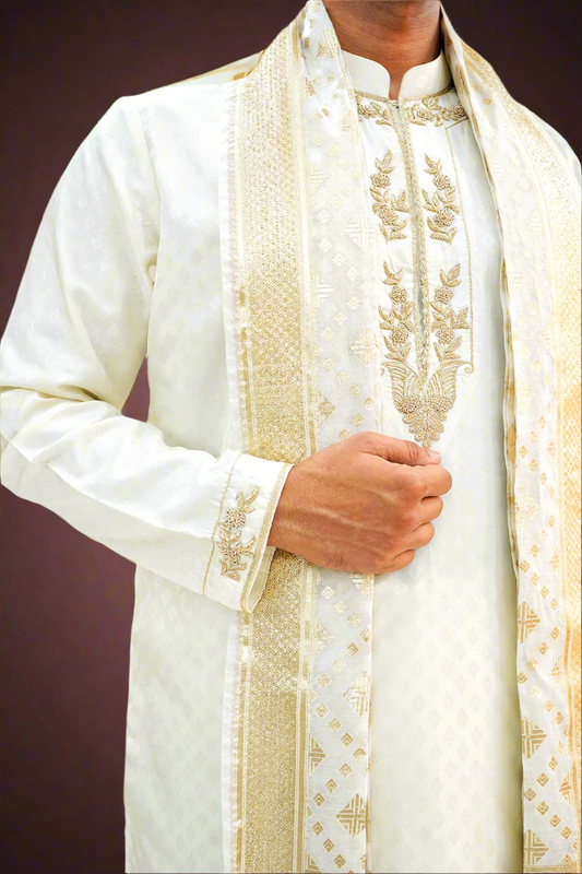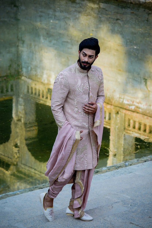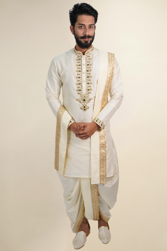 Arch Sherwani With Dupion Silk dhoti and khandwa