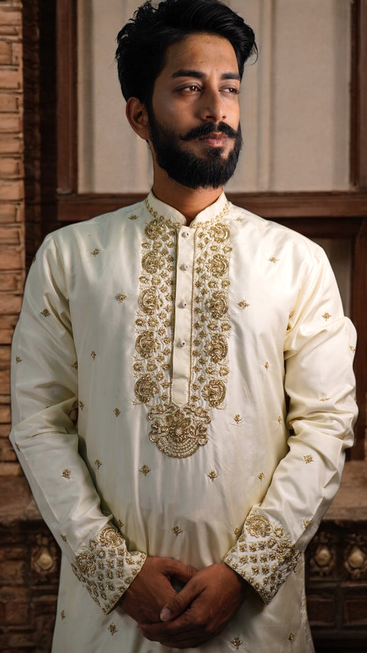 Light Cream Premium Silk Kurta with Zari Embroidery