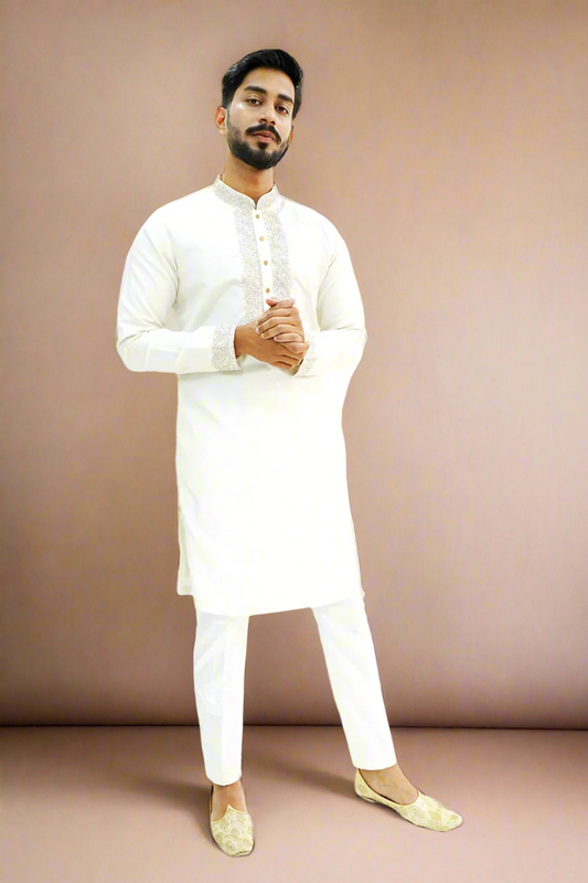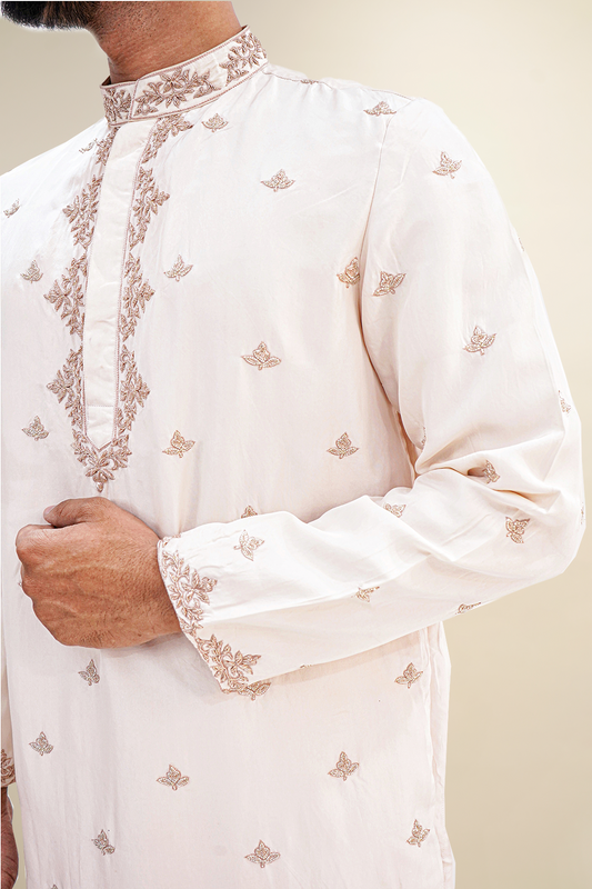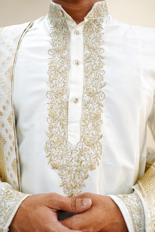 Off White Semi-Pattu Kurta with Zari Embroidery