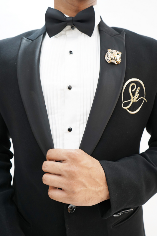 Black Italian Wool Crepe 2-Piece Tuxedo with Name Initial Embroidery