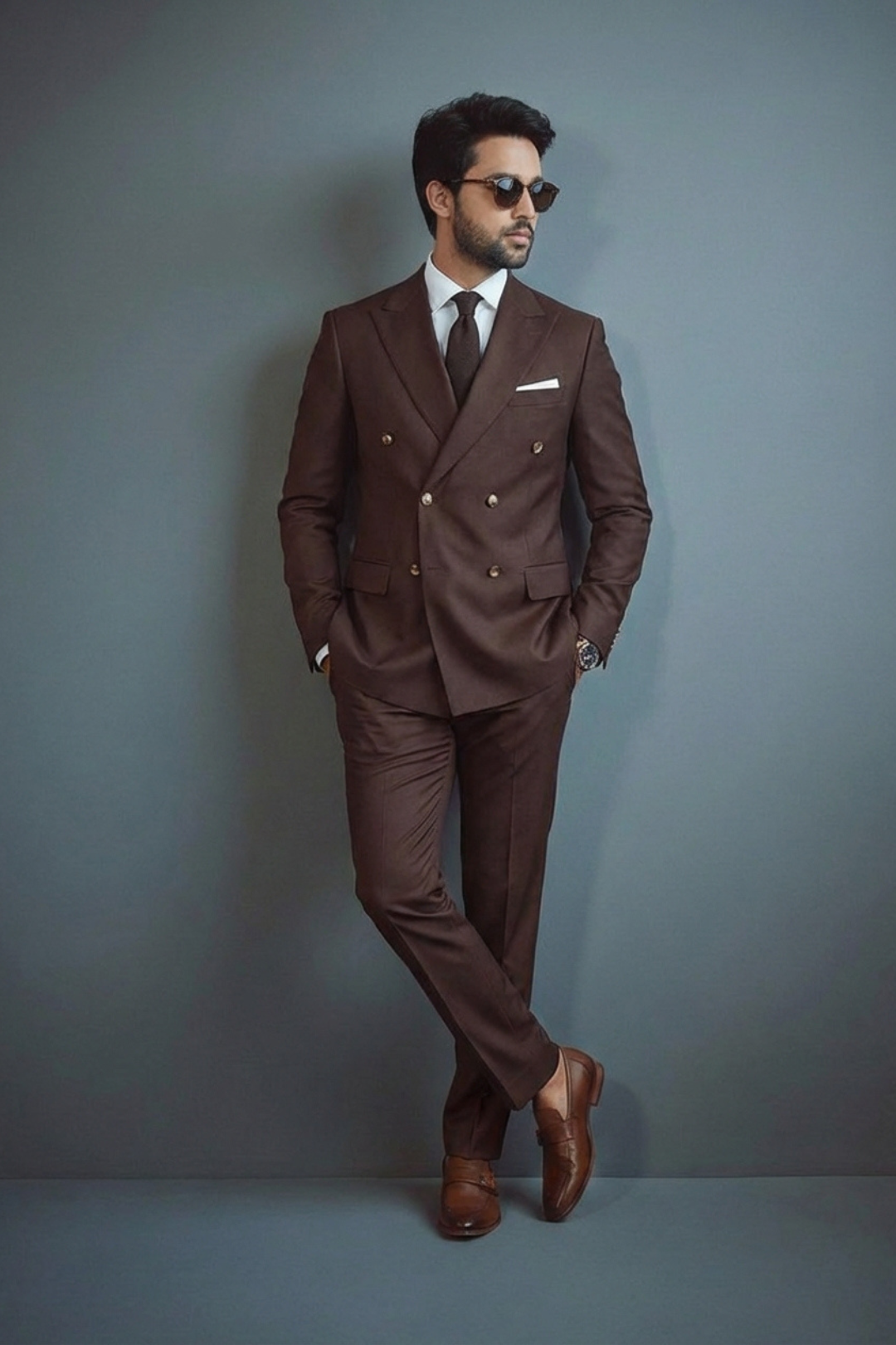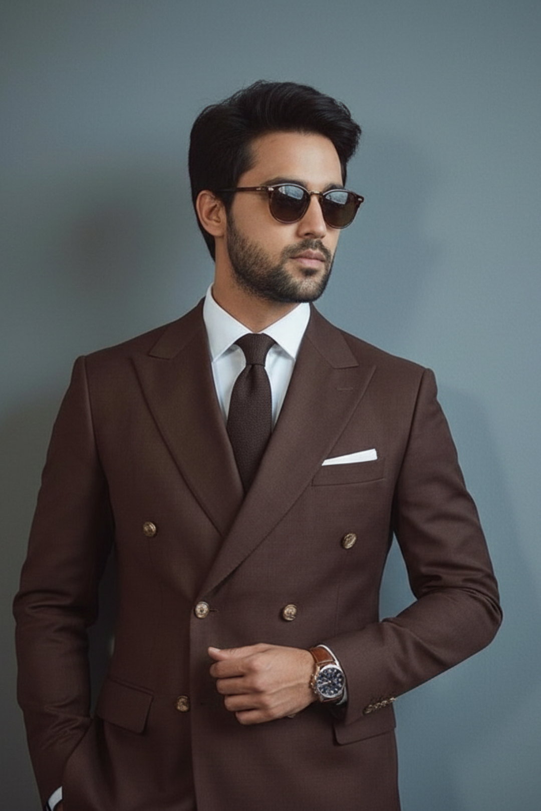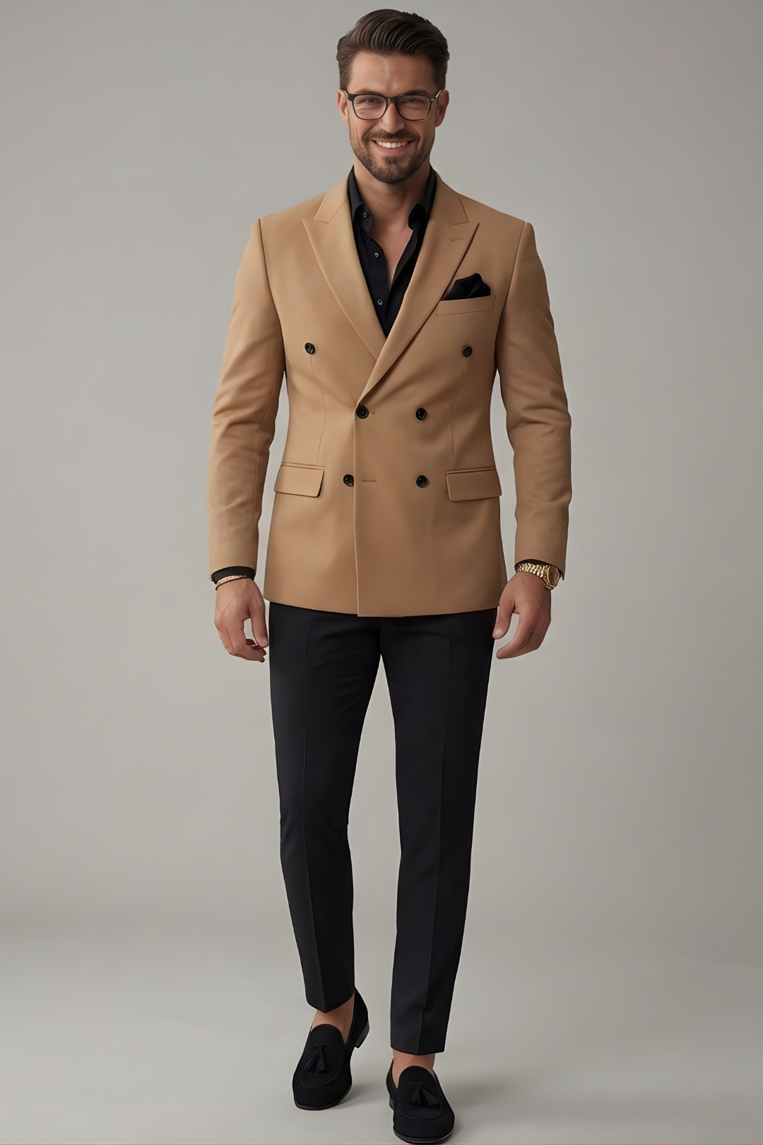Camel Brown Double Breasted Blazer for Men – Luxury Slim Fit Formal Party Wear Jacket