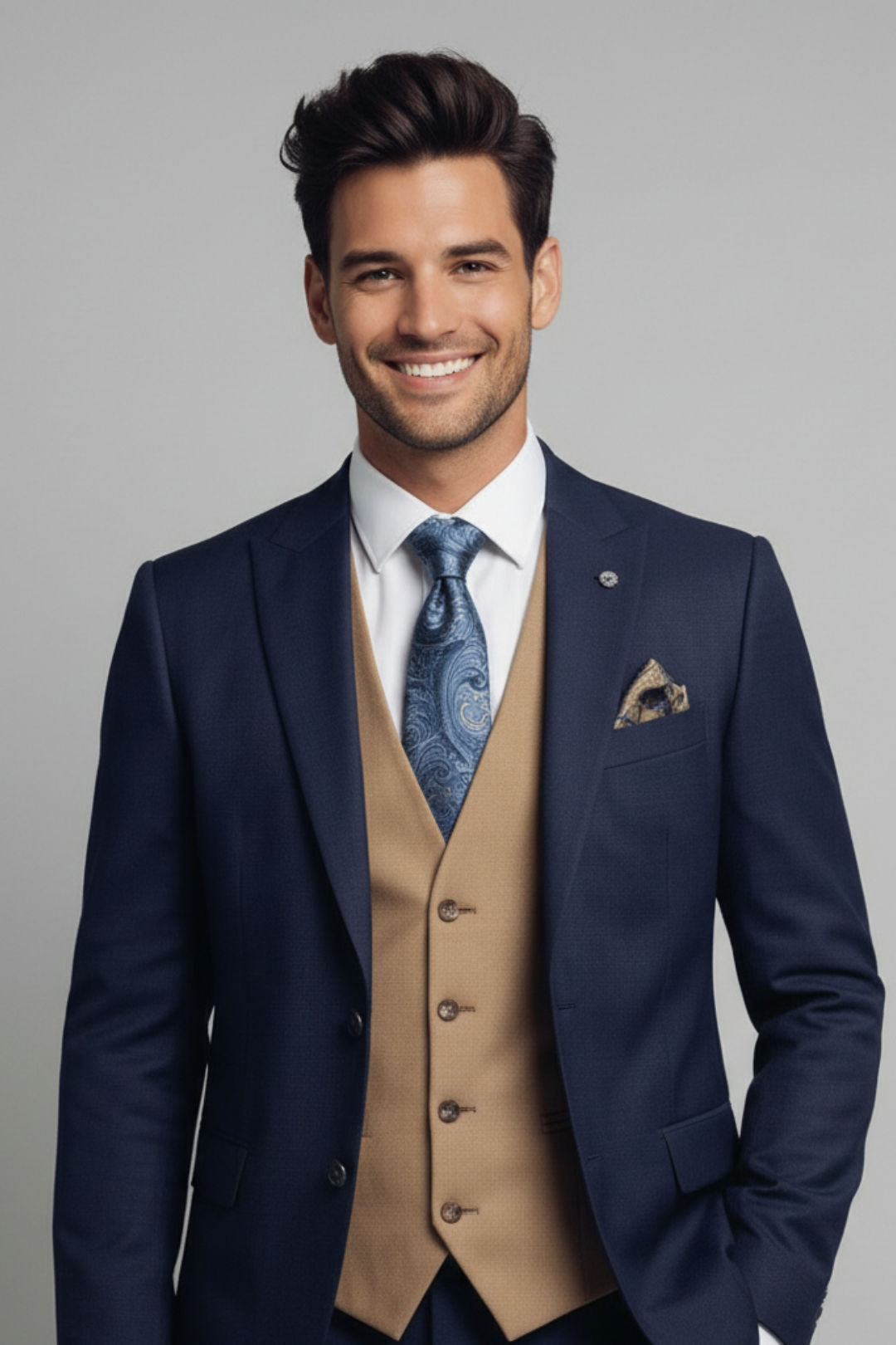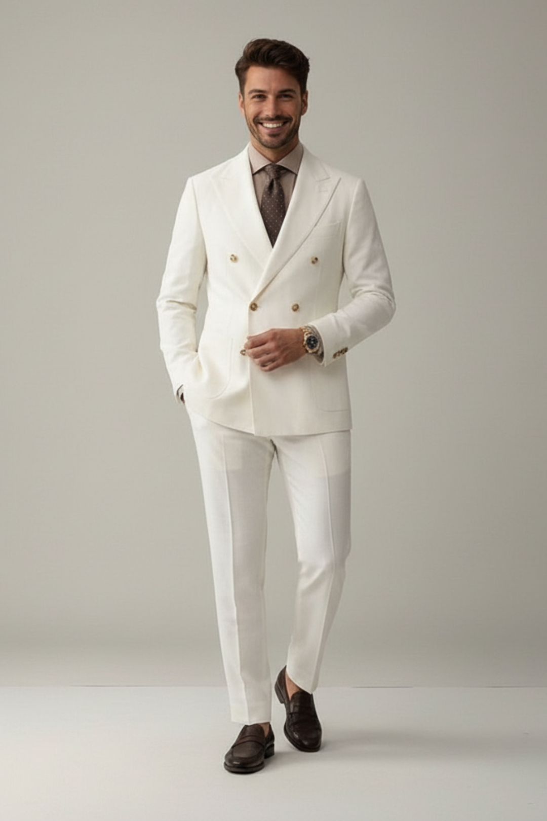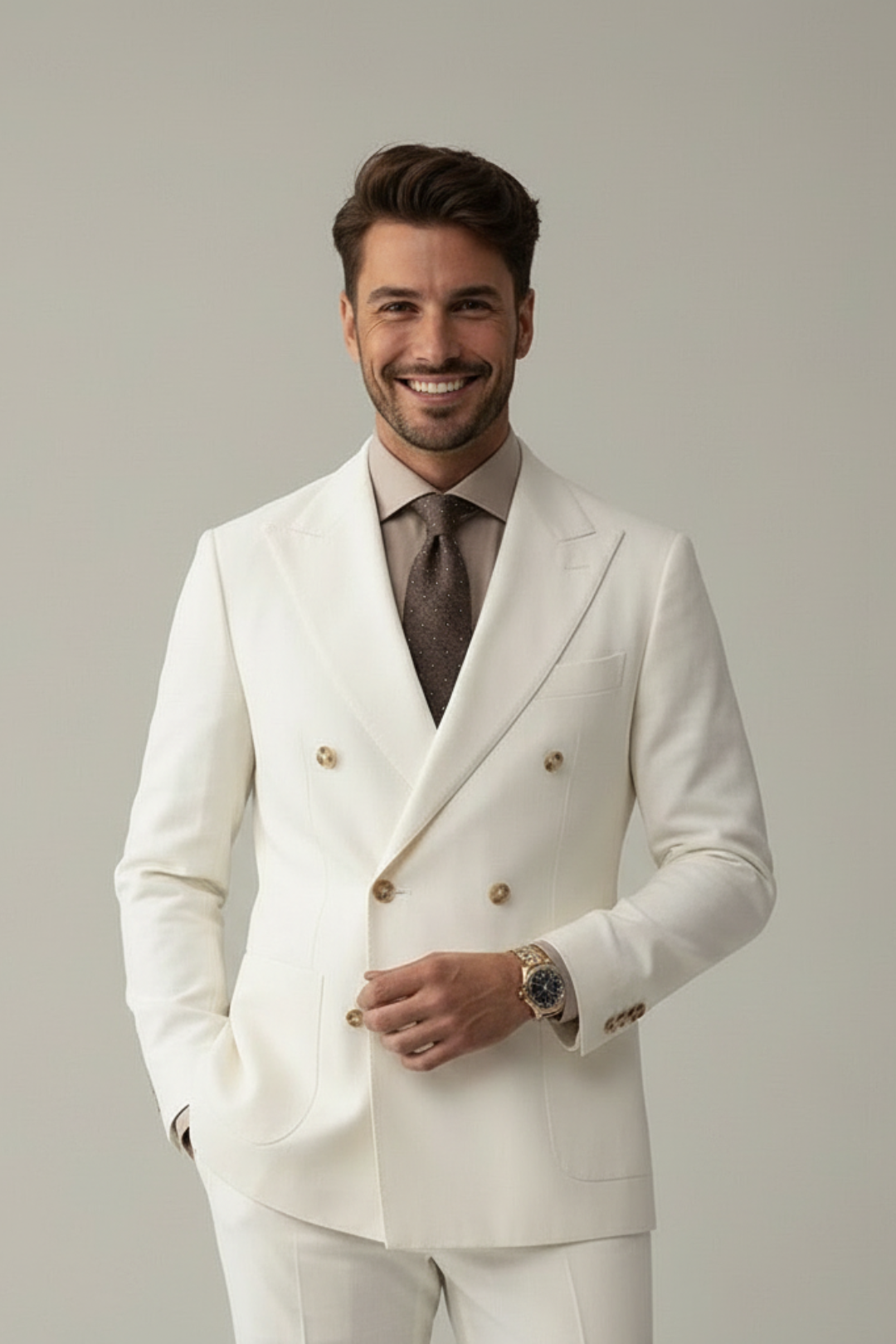 Camel Brown Double Breasted Blazer for Men – Luxury Slim Fit Formal Party Wear Jacket