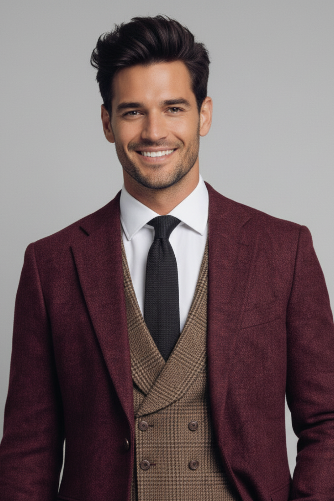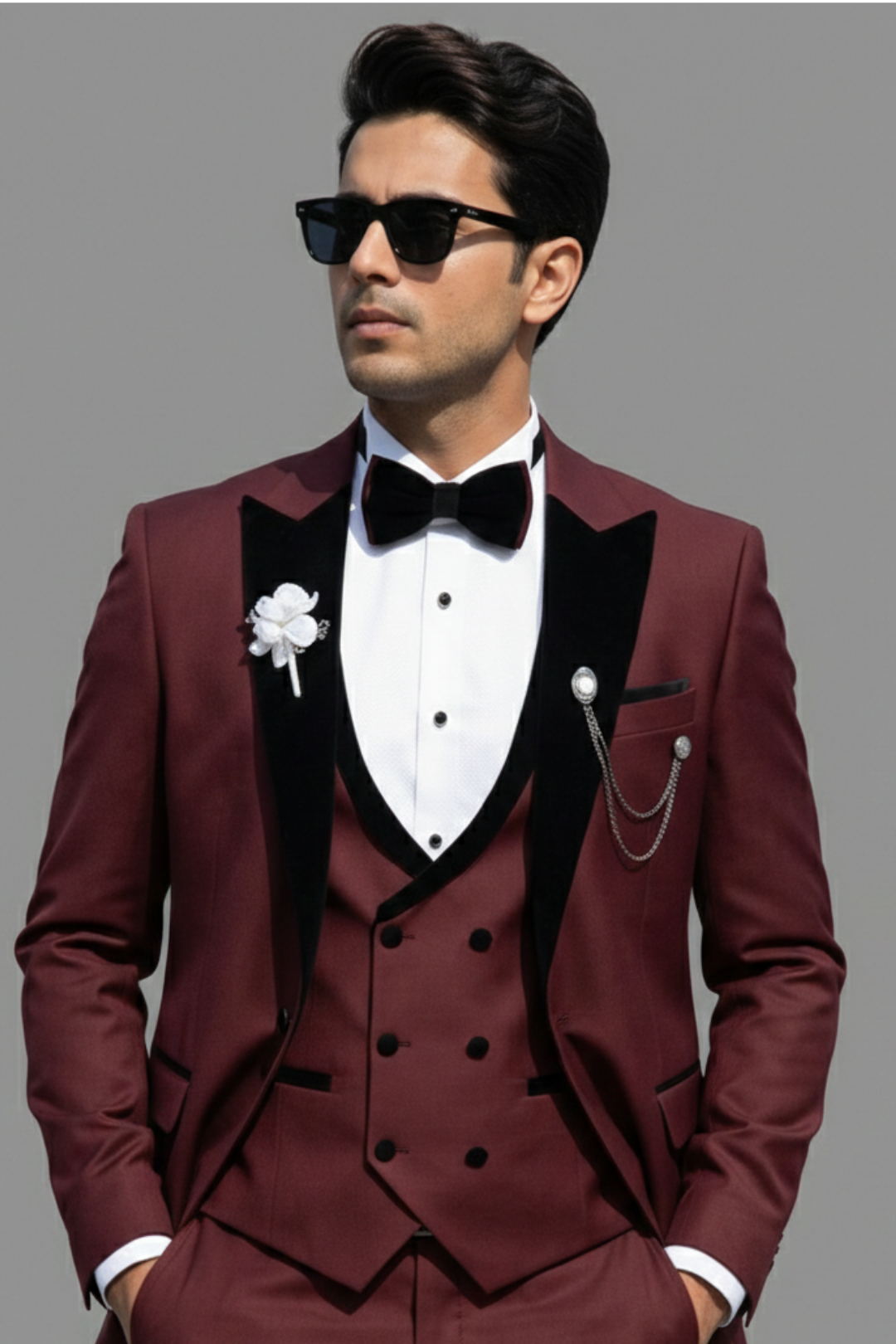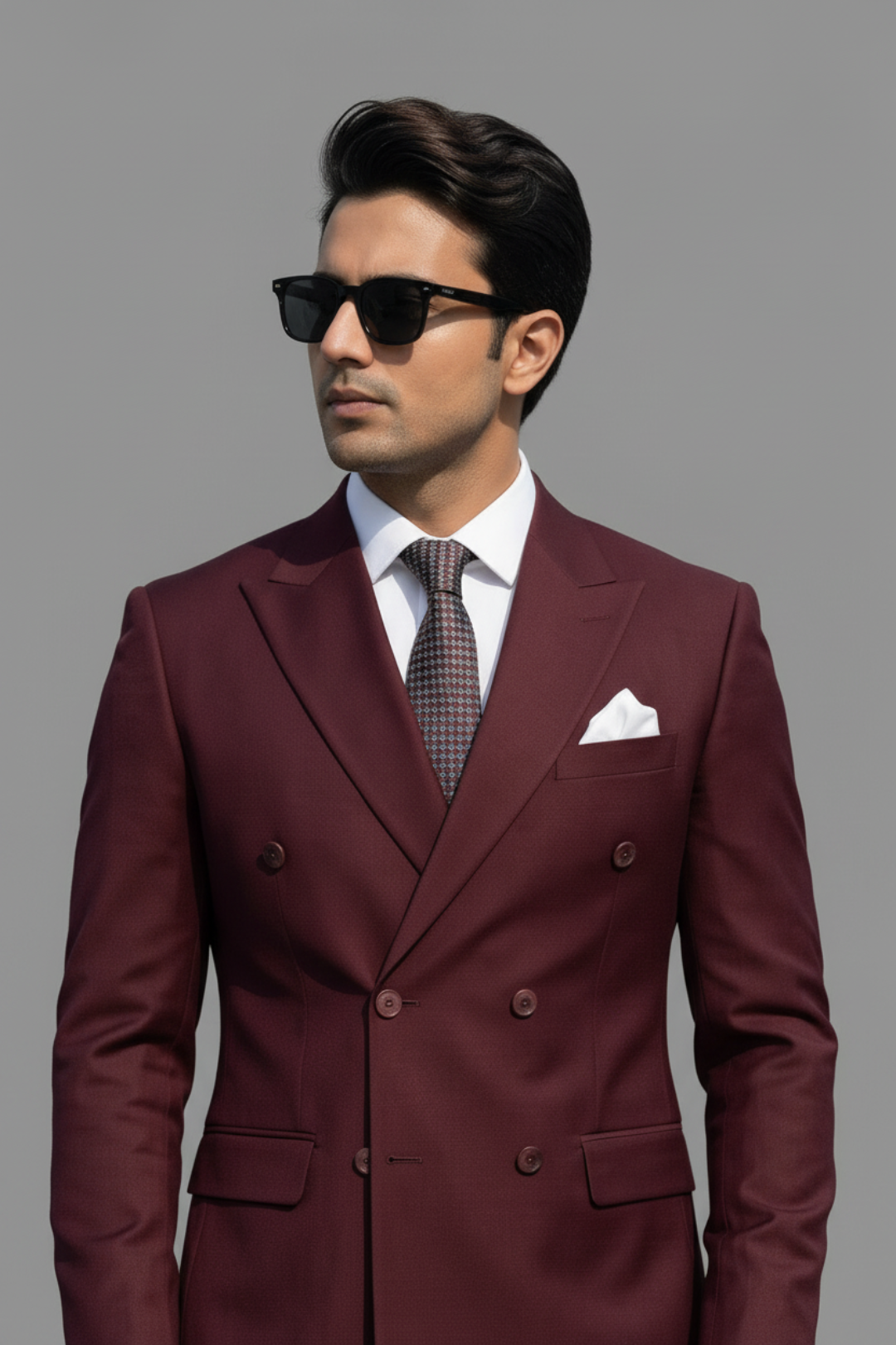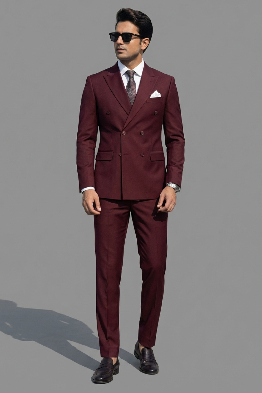 Burgundy Double Breasted Suit for Men – Premium Slim Fit Wedding & Party Wear Suit