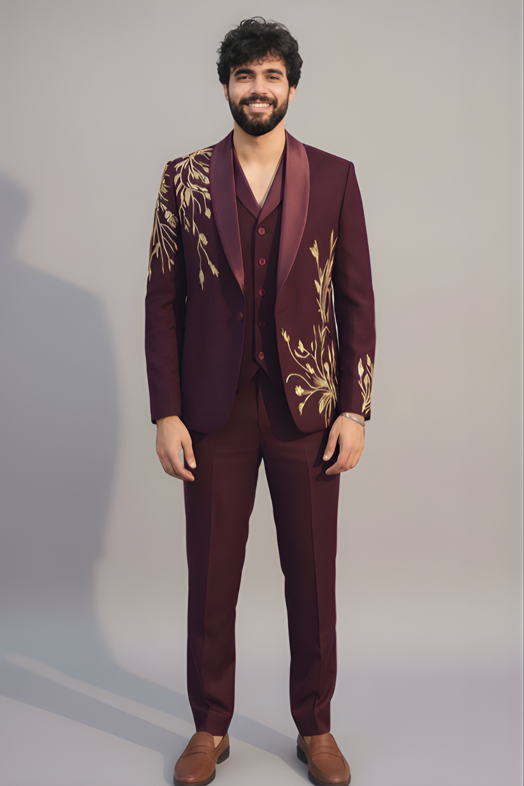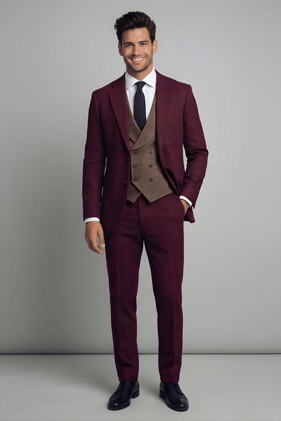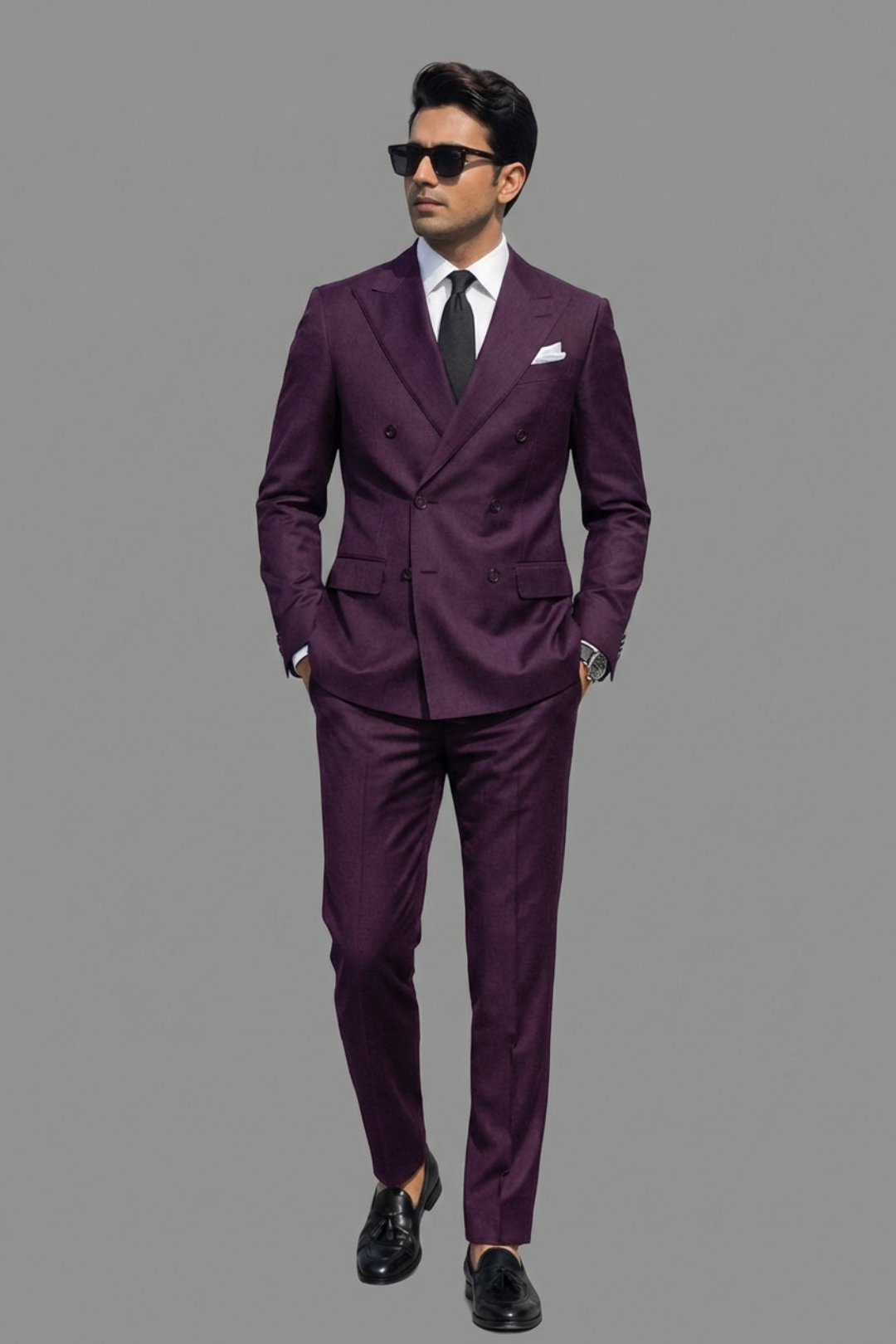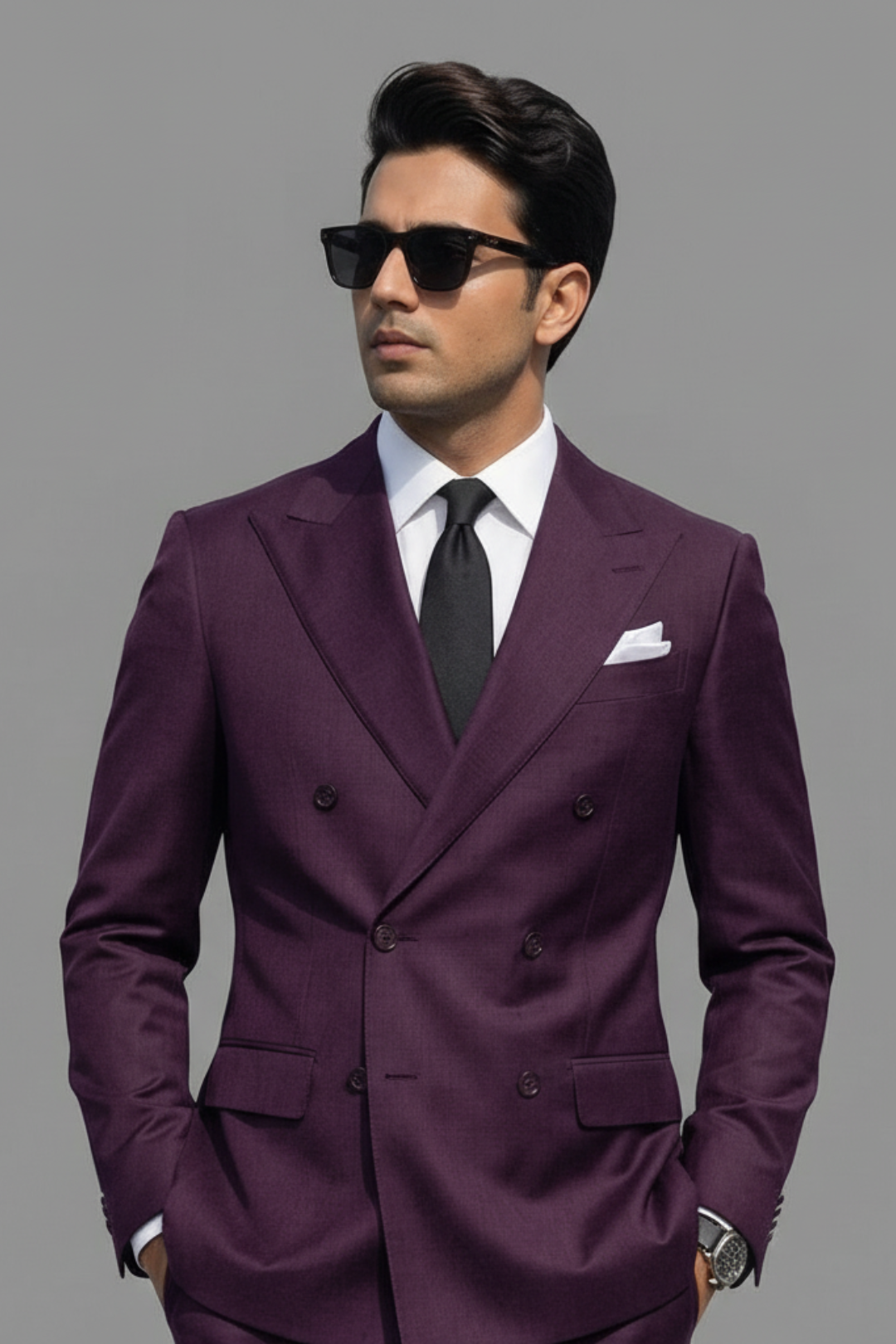 Deep Plum Double Breasted Suit for Men – Luxury Slim Fit Wedding & Party Wear Suit