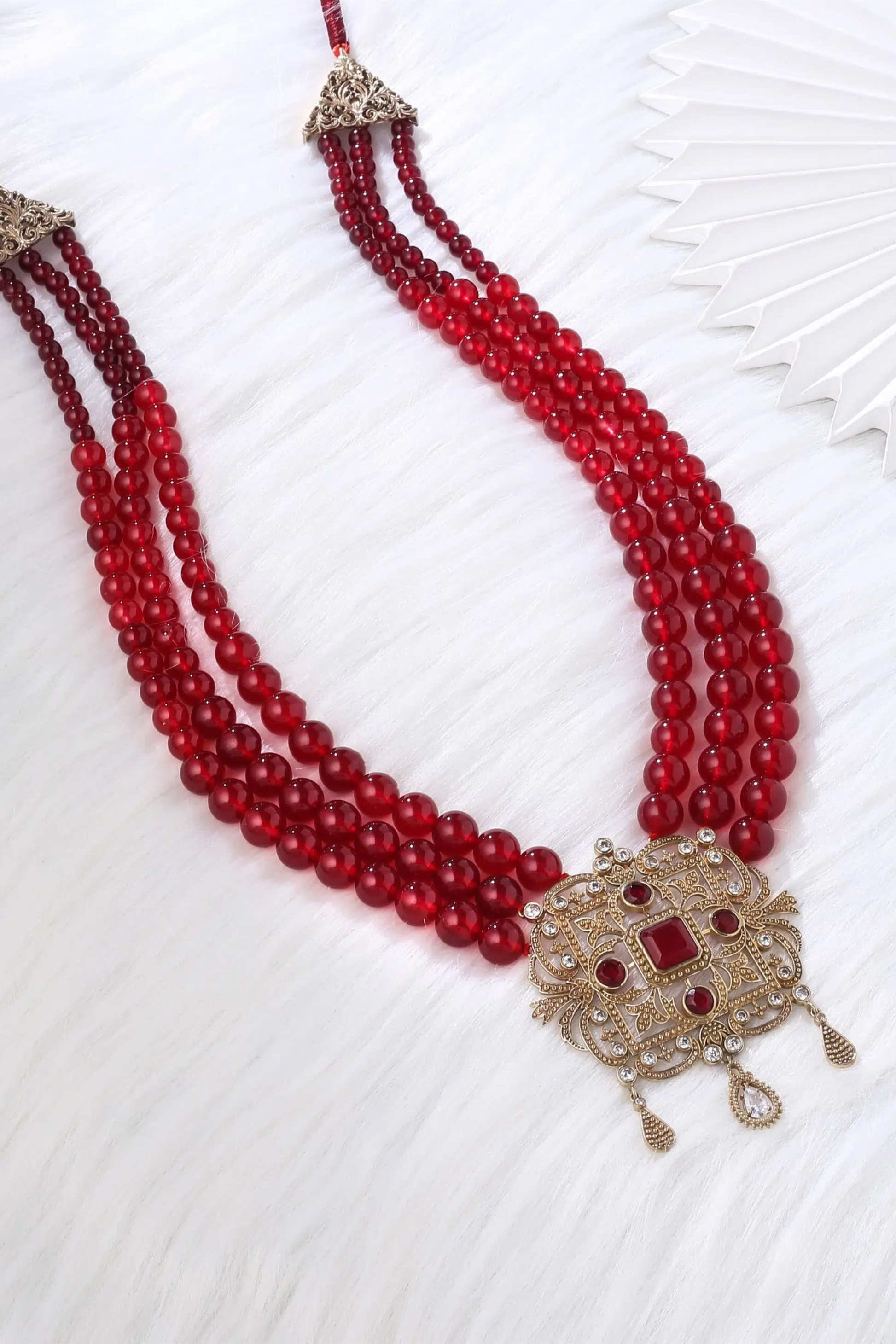 “Drenched in the hues of power and ardor, the Power of Prince Mala is a visual narrative of regal charisma. The choice of red beads reflects a bold departure from the ordinary, symbolizing courage and resilience. The arrangement of beads is a dance of intensity and finesse, capturing the essence of a prince who leads with both might and grace. This design is not just a fusion; it’s a revolution, a daring departure from convention.”